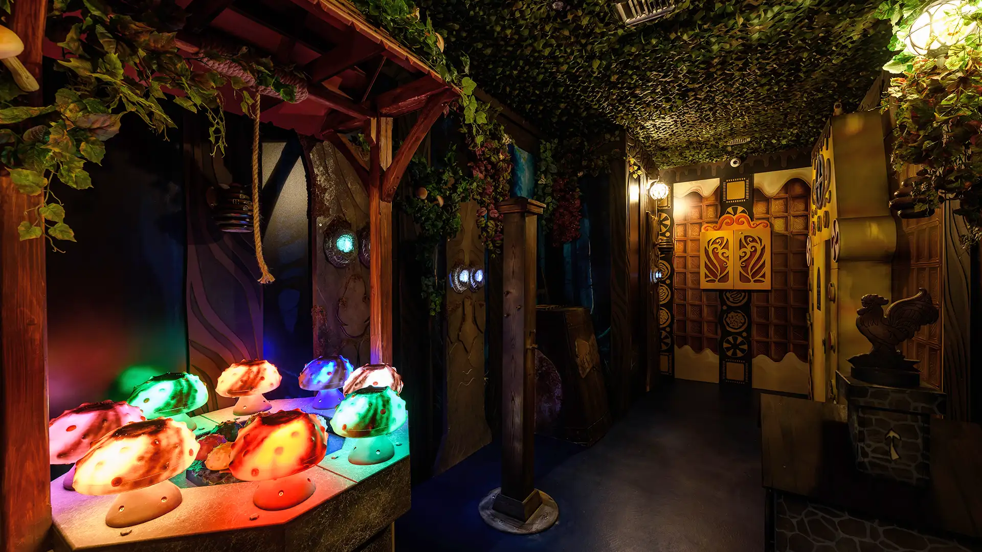 A fairy-tale escape room with a dark twist, set in a magical yet menacing forest. Lush scenic detail, tactile puzzles, and a whimsical-meets-creepy atmosphere make this game a standout family attraction.