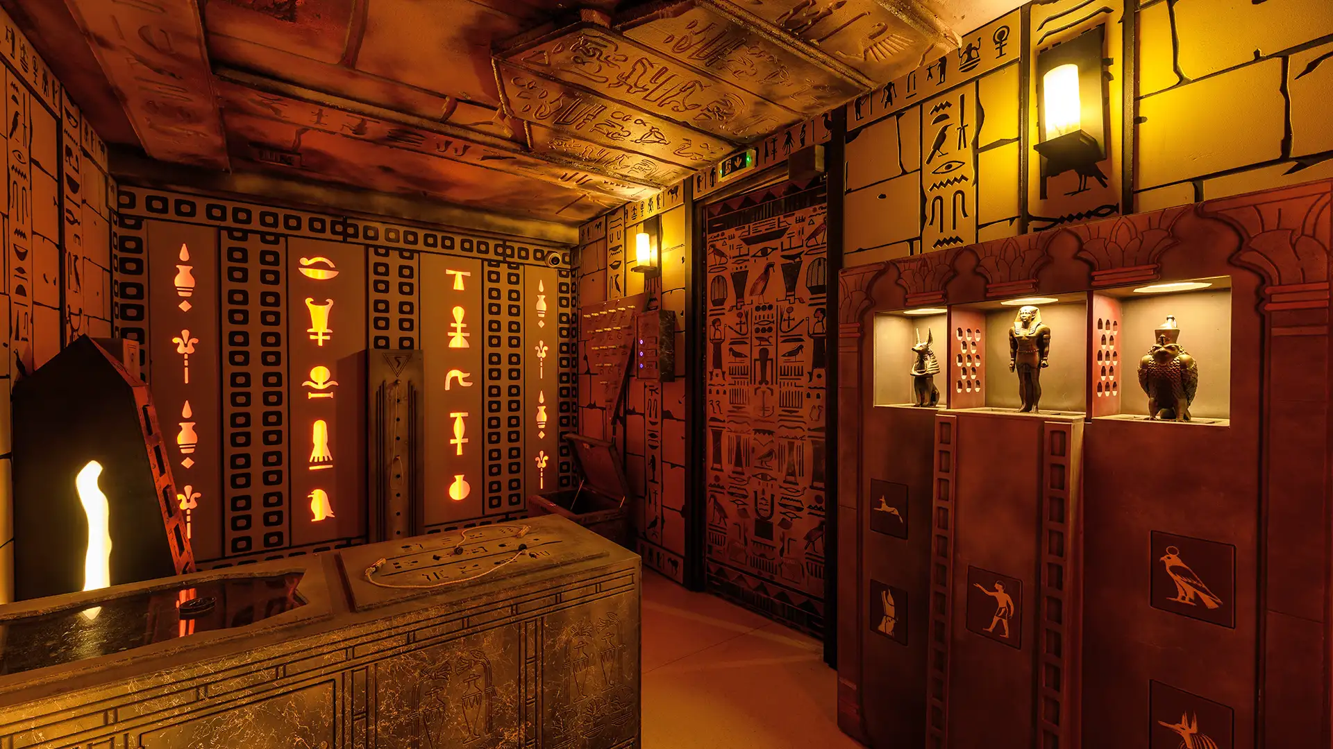 A visually rich Egyptian tomb adventure that blends exploration, archaeology, and mystery. This escape room features elaborate stonework theming, ancient hieroglyph puzzles, and atmospheric effects — delivering an exciting, family-friendly challenge with strong replay value.